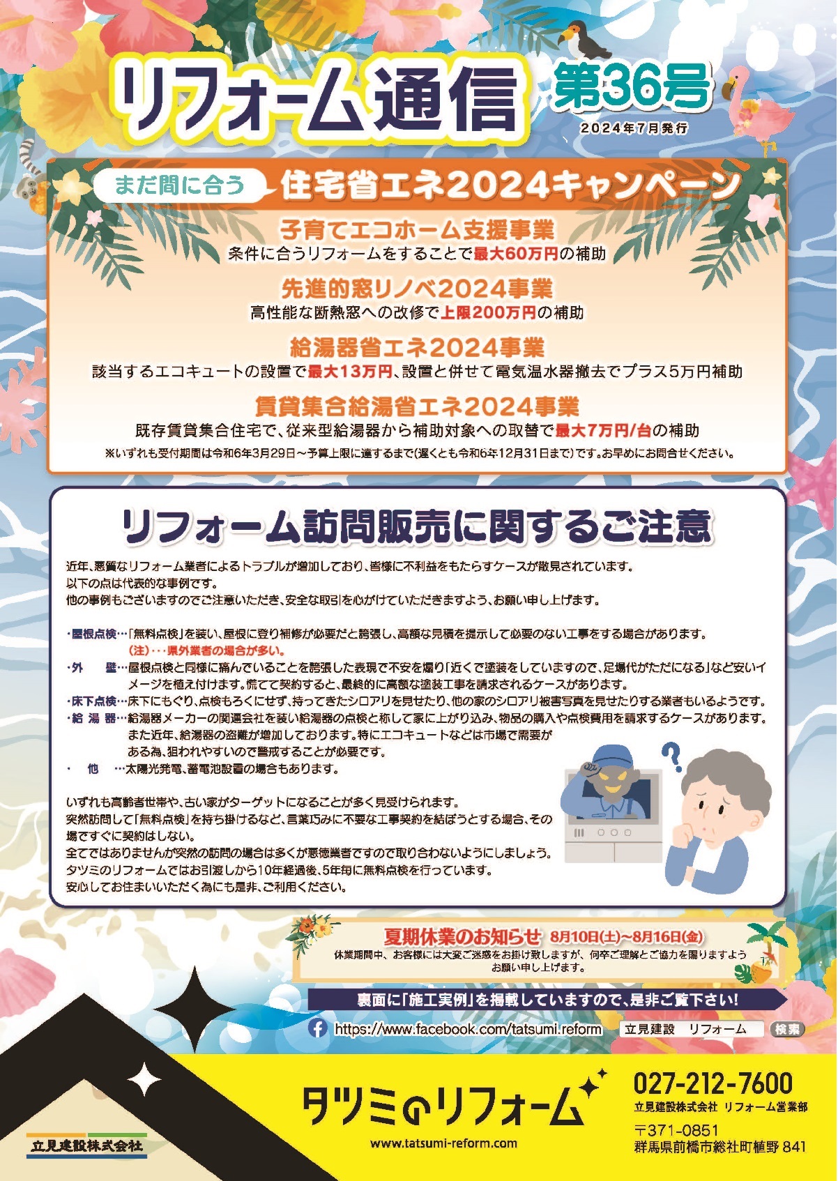 2024 07.26 リフォーム通信 第36号を発行しました。≪2024年7月≫