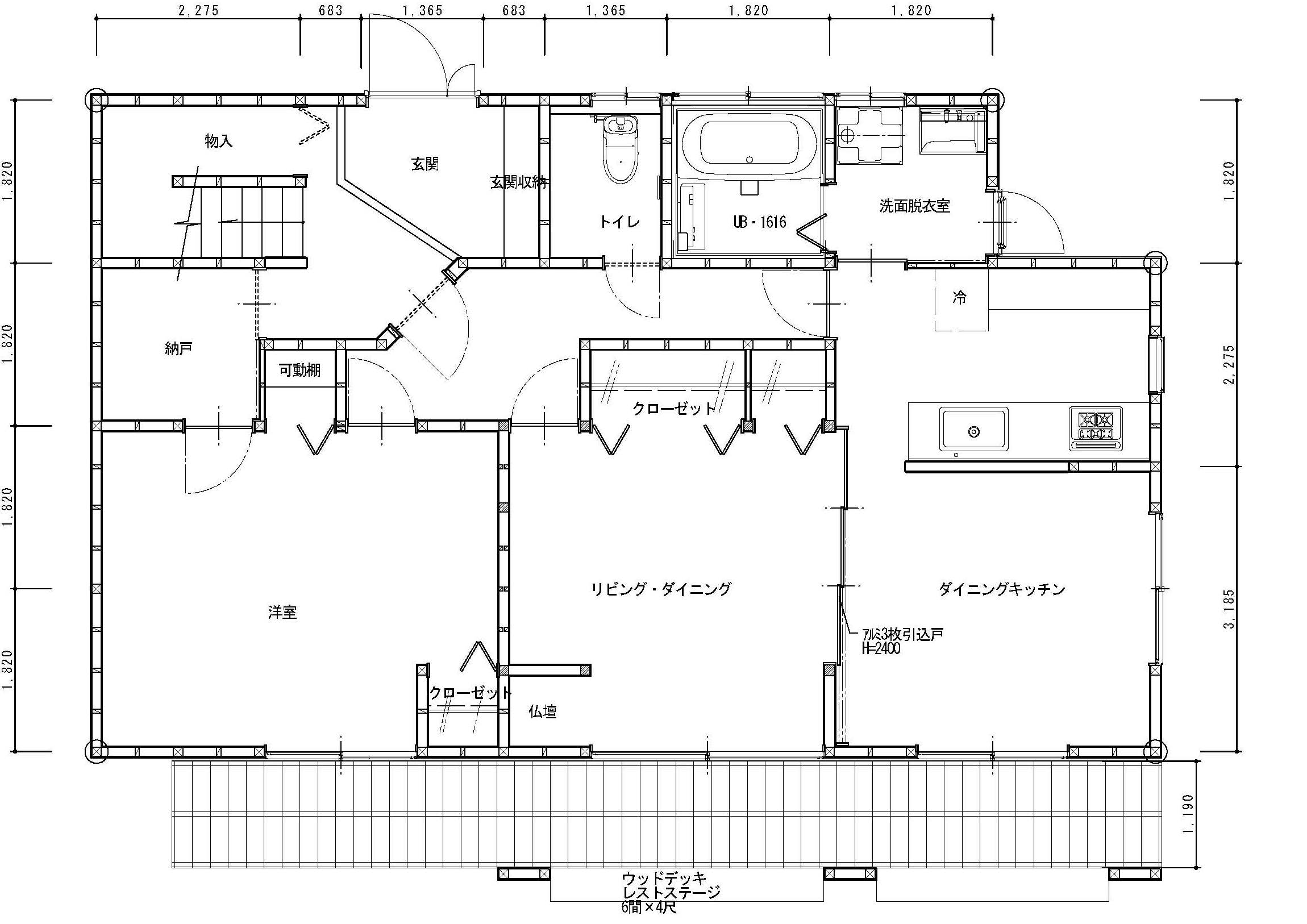 「2世帯住宅のしばらく使用していなかった1階を改修して、活用したい。」というご要望から、1階キッチン・ユニットバス・洗面化粧台・トイレ交換、LDK改装、和室→洋室に変更、既存ウッドデッキ撤去し樹脂製デッキに交換、庭木撤去を行いました。